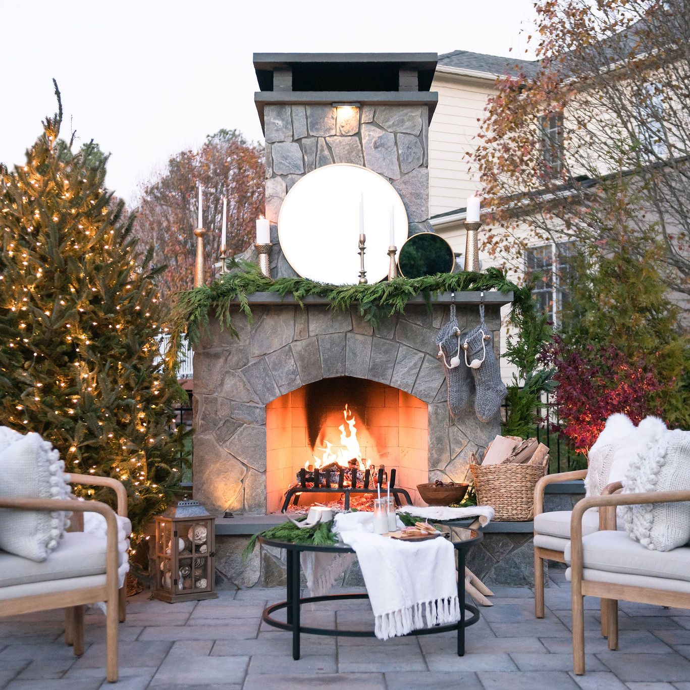 Our 2021 Holiday photoshoot delivers all of the holiday feels! From roasting chestnuts to sleigh bells to milk and cookies for Santa, we have set the scene for holiday magic and memories. The project features a Techo-Bloc paver patio, raised terrace, outdoor fireplace, and complementing landscaping and lighting. The photo staging was done by AGG Redesigns and features a table centerpiece from Strawberry Fields Flowers and Finds as well as greenery from Tom Leonard's Market, and Strange's Florist.